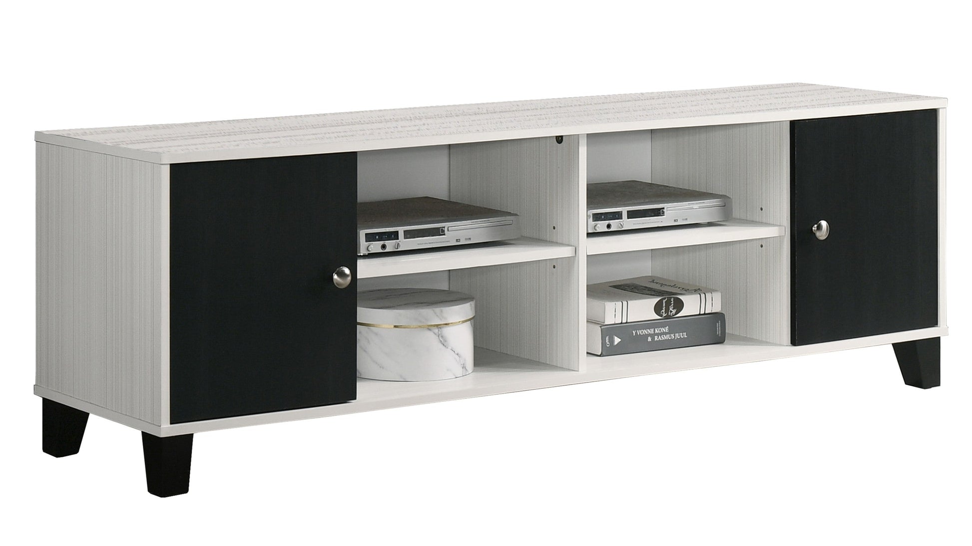 Le meuble TV Akerson offre un design élégant et moderne avec une combinaison de blanc et de noir. Son esthétique minimaliste rehaussera n'importe quel salon tout en offrant un grand espace de rangement pour vos divertissements. Sa construction robuste garantit une utilisation durable.