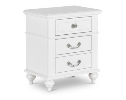 Ajoutez la table de chevet Alana à votre chambre pour un rangement pratique et élégant. Les trois tiroirs sont dotés de poignées en métal et d'un bouton pour un accès facile à vos essentiels de chevet. Apportez une touche d'originalité à votre chambre avec ce meuble ludique et pratique.