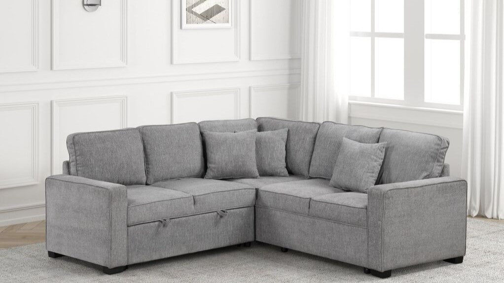 Le canapé-lit sectionnel Ariel allie confort et fonctionnalité moderne grâce à son design coulissant et ses ports USB intégrés. Accueillez facilement vos invités et rechargez vos appareils tout en vous relaxant avec style. Un incontournable pour tout espace de vie contemporain.