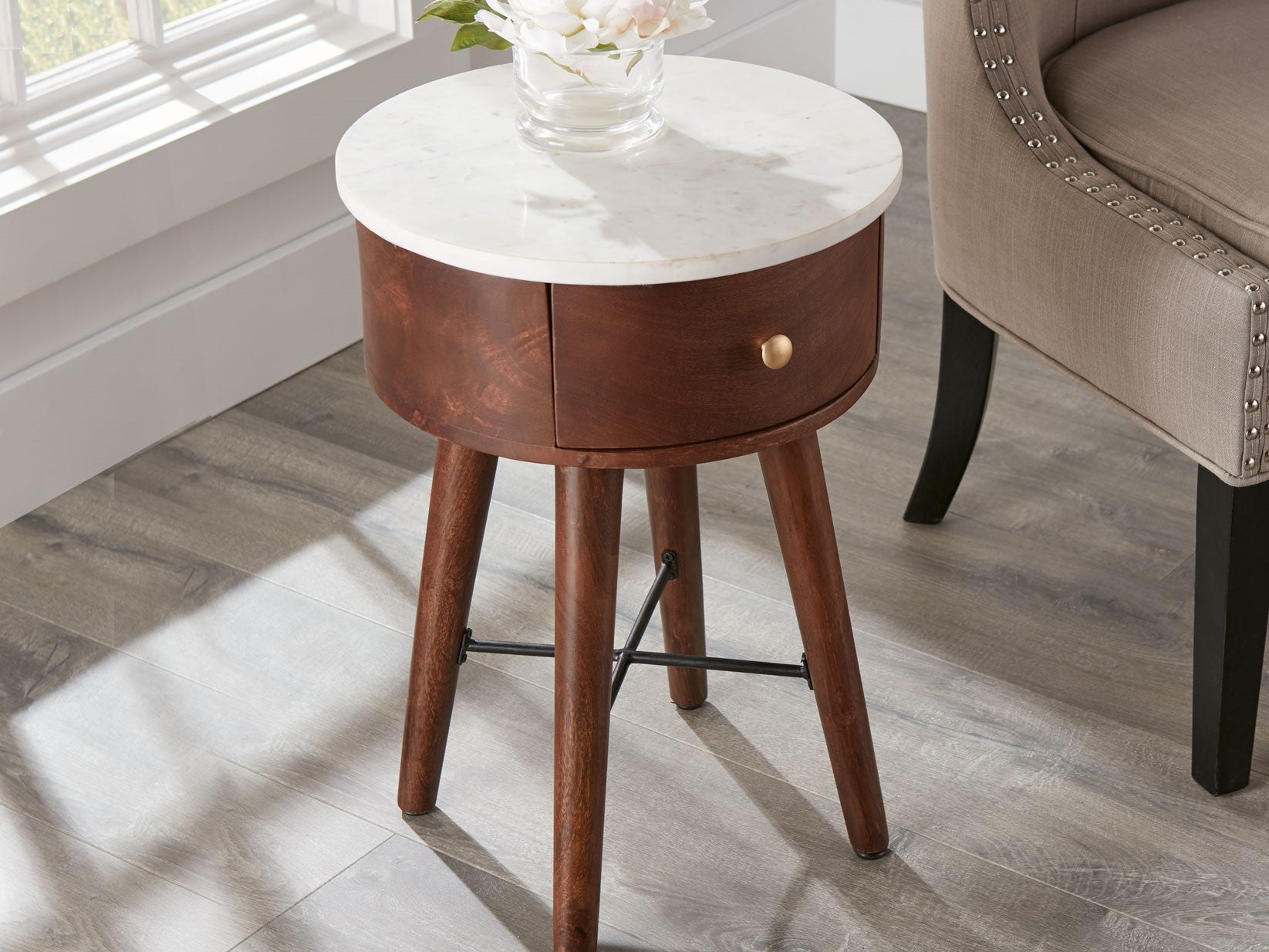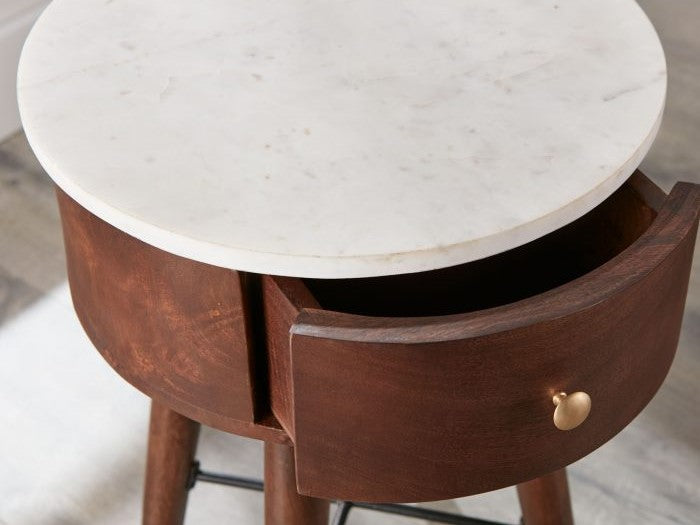 Donnez une nouvelle dimension à votre décoration intérieure avec notre produit audacieux et polyvalent : une console en manguier massif avec un luxueux plateau en marbre blanc et des ferrures en cuivre saisissantes. Organisez votre espace grâce à son tiroir fonctionnel et apportez une touche d'élégance audacieuse à n'importe quelle pièce. Disponible dans une finition merisier brun audacieux.