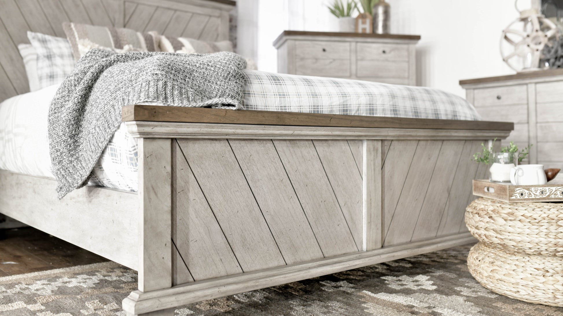 Découvrez la chambre Bear Creek : un cadre de lit en bois massif aux finitions rustiques blanc ou brun anthracite. Sa construction robuste offre une base idéale pour une nuit de sommeil confortable (n'oubliez pas : un sommier est nécessaire !). Apportez une touche de charme rustique à votre chambre avec Bear Creek.