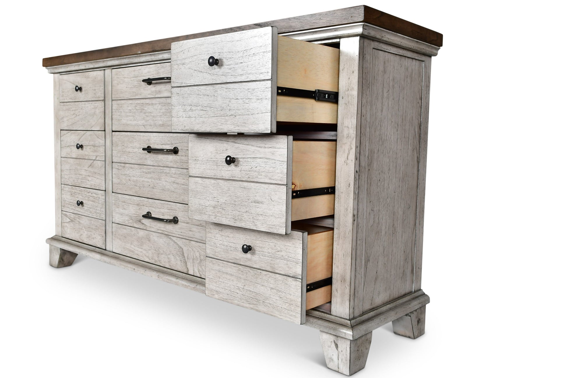 Libérez votre côté sauvage avec la commode Bear Creek. Dotée de 9 tiroirs spacieux et de poignées élégantes, elle apporte fonctionnalité et style à n'importe quelle chambre. Alors, laissez libre cours à votre côté sauvage et améliorez votre espace de rangement avec la commode Bear Creek.