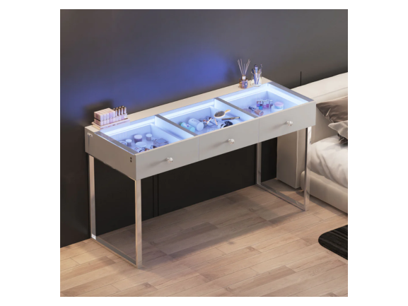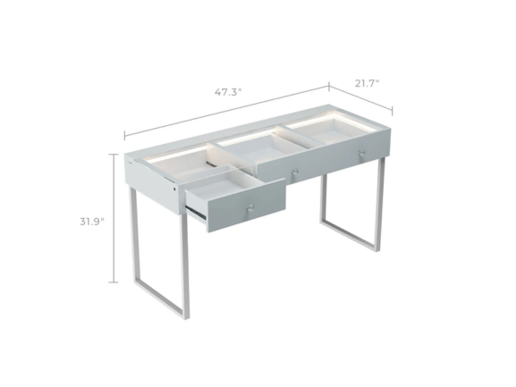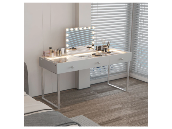 L'ensemble de toilette Billie est conçu pour votre confort. Doté d'une bande lumineuse LED intégrée et d'un port de charge USB, il est idéal pour se maquiller ou se coiffer. Son grand plan de toilette offre un espace généreux pour tous vos essentiels beauté, tandis que ses rangements polyvalents vous permettent de tout organiser. Son design élégant ajoute une touche d'élégance à votre chambre ou dressing.