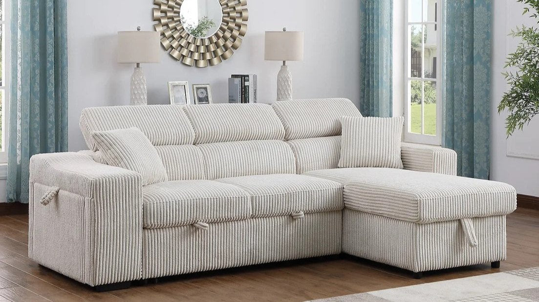 Préparez-vous à vous détendre avec style et confort grâce au canapé-lit Bonaterra. Ce canapé polyvalent est doté d'un lit gigogne pour accueillir vos invités, d'un doux velours côtelé pour des nuits douillettes et même d'un chargeur sans fil pour vos appareils. De plus, profitez d'un porte-gobelet pratique et d'un espace de rangement pour méridienne. Fonctionnel et ludique, ce meuble est un incontournable pour tout espace de vie.