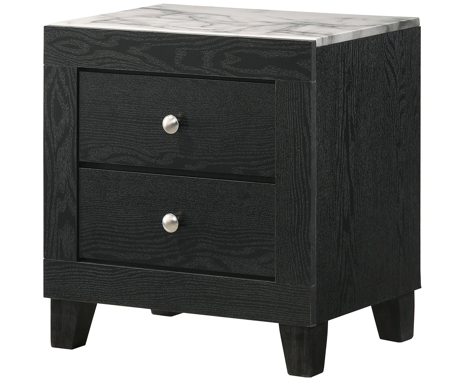 Sublimez votre chambre avec la table de chevet Cadence, élégante et raffinée. Ses deux tiroirs offrent un grand espace de rangement, tandis que son plateau en faux marbre ajoute une touche d'élégance. Fabriquée en bois noir et rehaussée de boutons en métal, cette table de chevet allie fonctionnalité et sophistication.