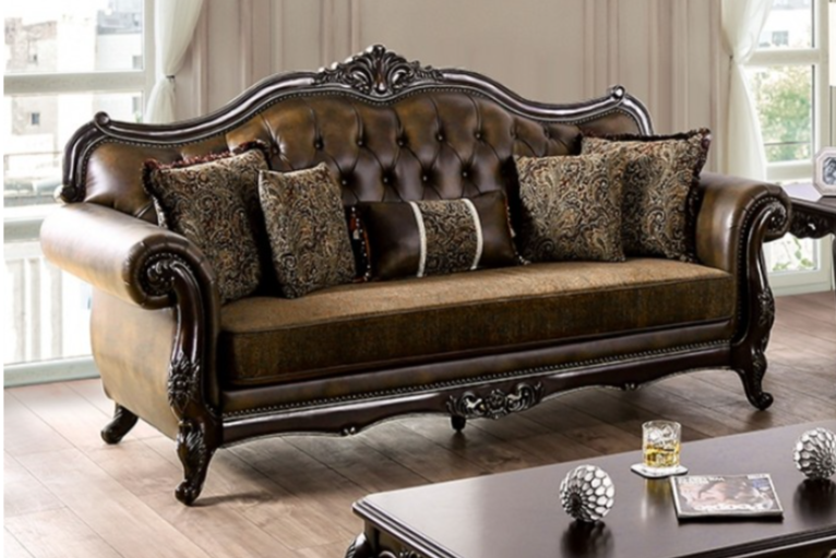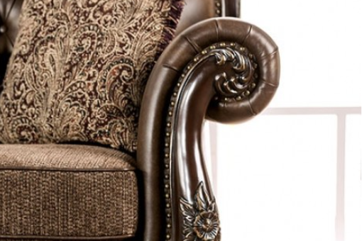 Créez une atmosphère luxueuse dans n'importe quel espace de vie avec Ensenada Living. Le similicuir traditionnel cerisier foncé et marron, le dossier capitonné, les accoudoirs roulés et la garniture cloutée apportent une touche d'élégance à ce coussin d'assise en bois massif de style banc. Des coussins décoratifs sont inclus pour plus de confort et de style.