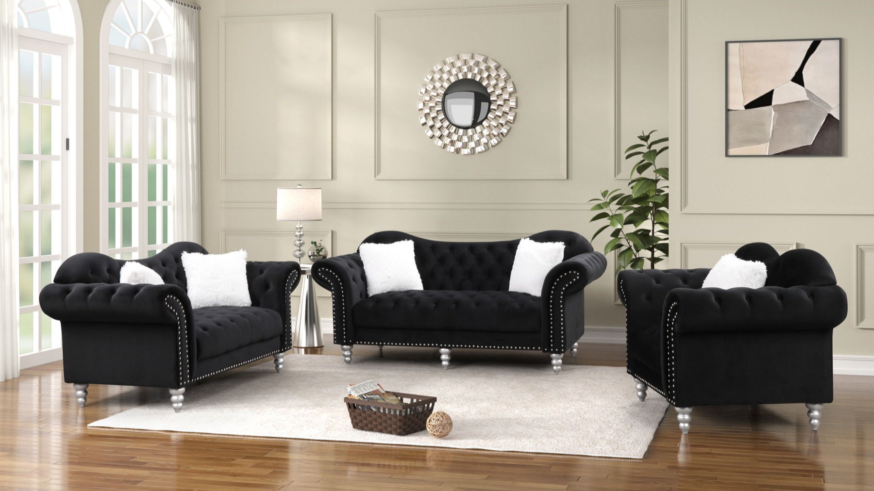 Découvrez l'ensemble Equinox 3 pièces : l'alliance parfaite du luxe et du style ! Enveloppez-vous dans son doux velours et admirez les élégants détails cloutés. Avec cet ensemble, vous serez bien installé (au sens propre comme au sens figuré).