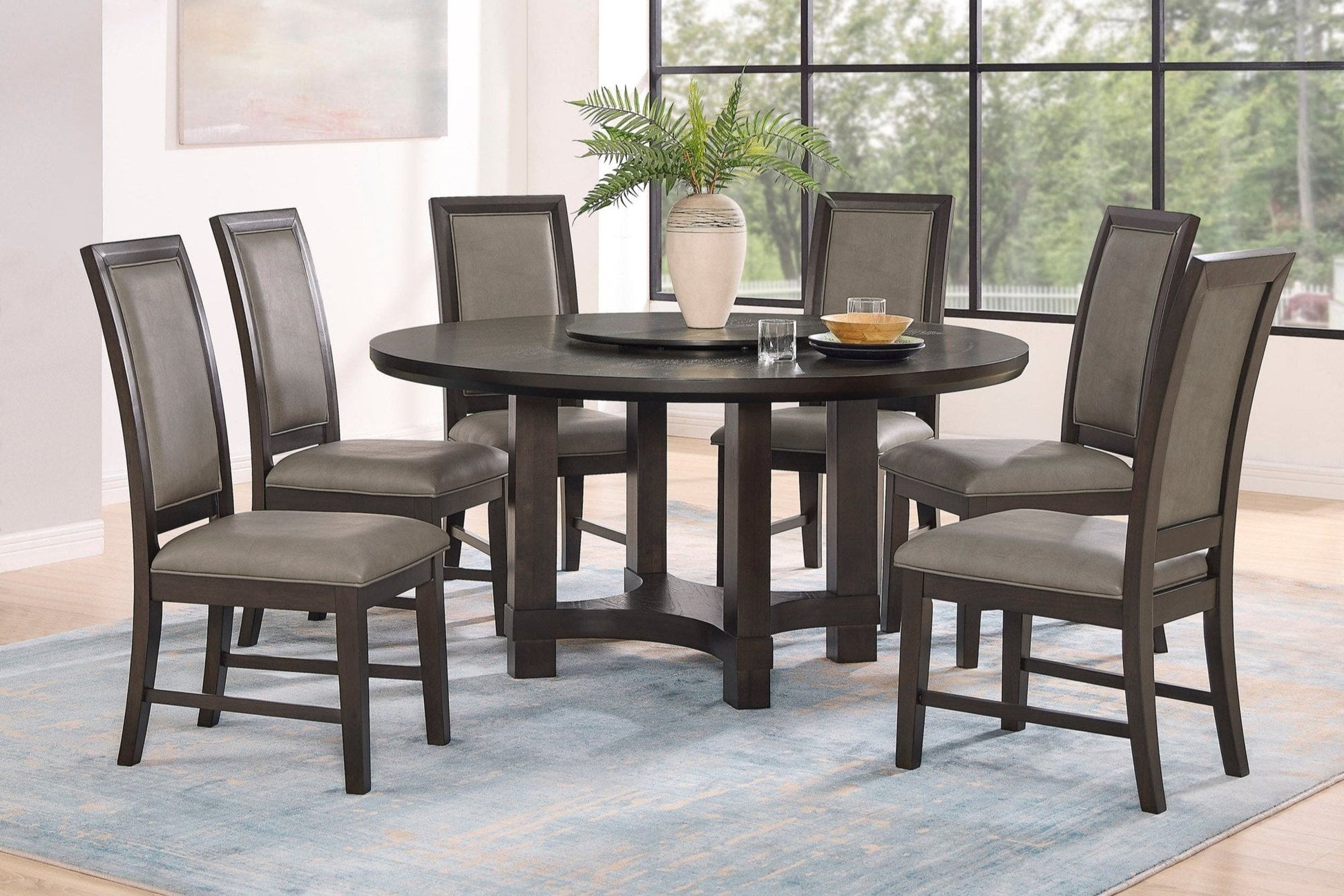 L'ensemble de salle à manger Jeffries offre une solution pratique et élégante pour vos repas. La table ronde Lazy Susan facilite le partage et la distribution des plats, tandis que sa finition brun foncé ajoute une touche de sophistication à tout espace repas. Sublimez vos repas avec cet ensemble incontournable.