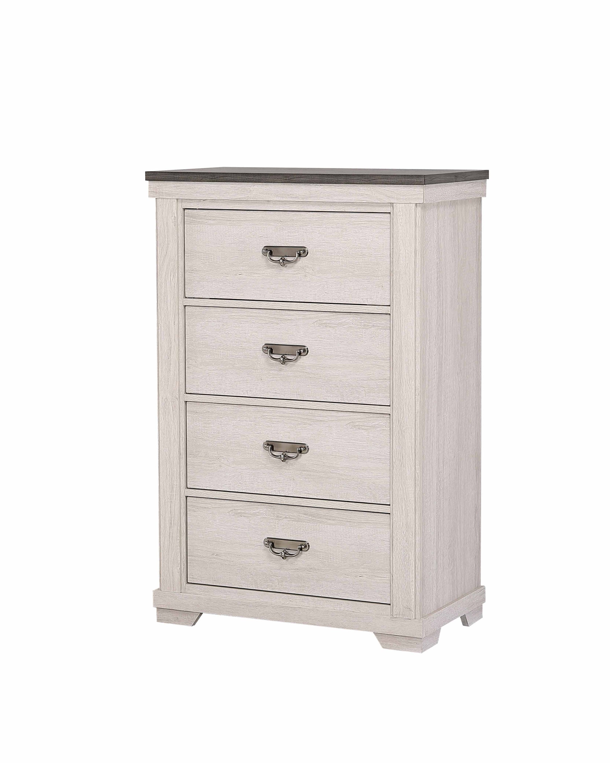 La commode Leighton apporte une touche de charme éclectique à n'importe quelle chambre. Dotée de quatre tiroirs spacieux, elle offre un vaste espace de rangement pour tous vos vêtements et accessoires. Son plateau brun foncé avec une finition blanche légèrement vieillie apporte une touche d'élégance rustique, tandis que les poignées en métal offrent un contraste élégant et moderne. Oubliez les rangements ennuyeux ; ajoutez une touche de personnalité avec la commode Leighton !