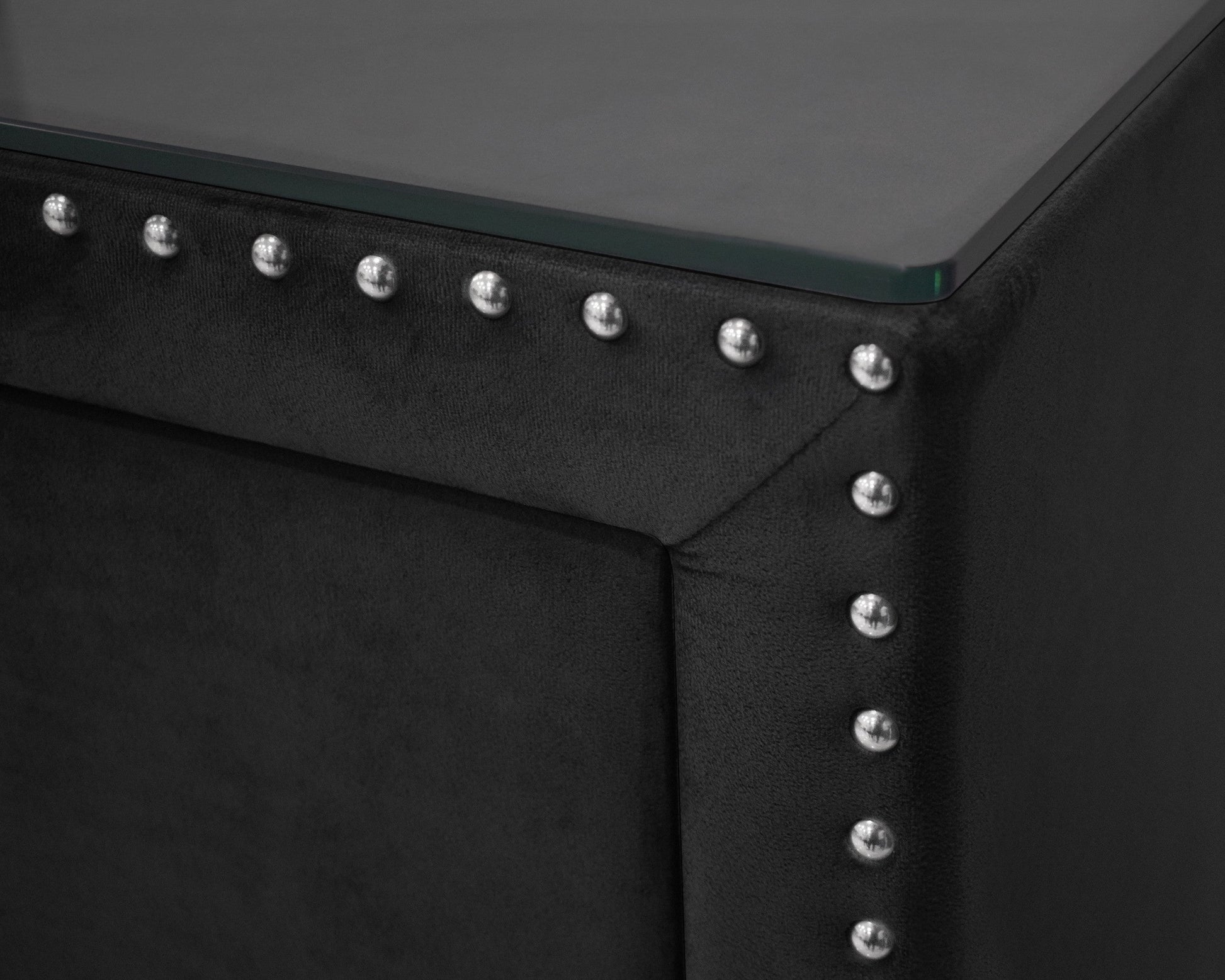Sublimez votre chambre avec l'élégante commode Lucinda. Ce meuble sophistiqué est doté de six tiroirs spacieux avec poignées en métal, parfaits pour ranger tous vos essentiels. Sa magnifique finition cloutée ajoute une touche glamour à votre décoration. Sublimez votre espace avec cette commode luxueuse et pratique.
