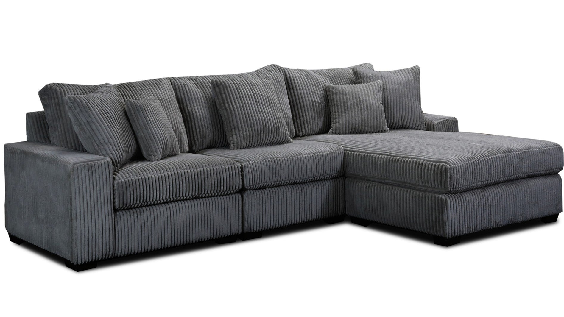 Créez un havre de luxe avec le canapé d'angle Onyx Option 5. L'extrémité méridienne et le canapé 3 places avec accoudoir droit offrent de nombreuses options d'assise, tandis que les coussins décoratifs inclus ajoutent une touche d'élégance. Détendez-vous avec style et confort grâce à ce canapé d'angle au design élégant.