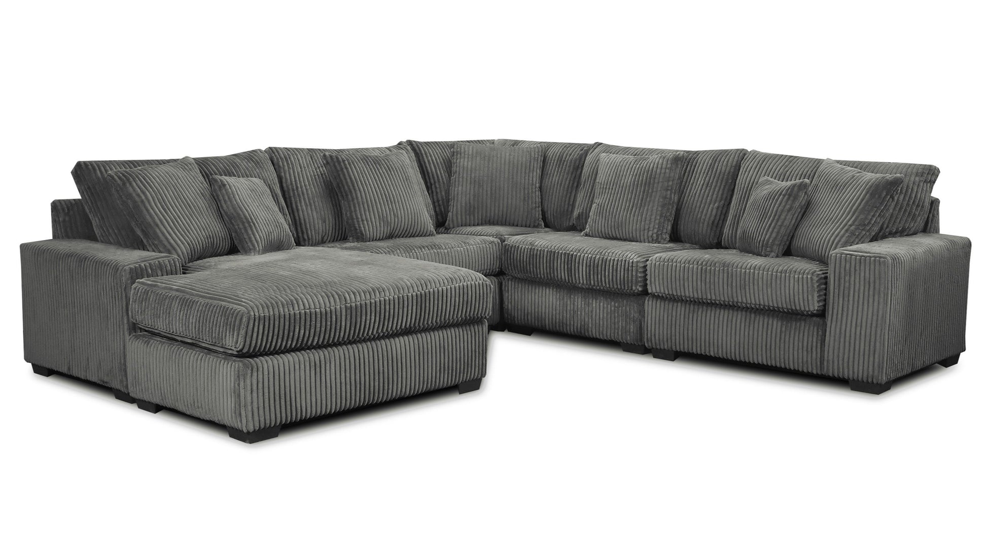 Ce canapé sectionnel 5 pièces, conçu avec expertise, comprend une méridienne avec accoudoir gauche, une méridienne d'extrémité, une chaise sans accoudoirs, une chaise biseautée et une chaise avec accoudoir droit. L'Onyx Option 7 offre des sièges polyvalents grâce à son agencement astucieux, alliant confort et fonctionnalité à votre espace de vie, tout en conservant une silhouette raffinée.