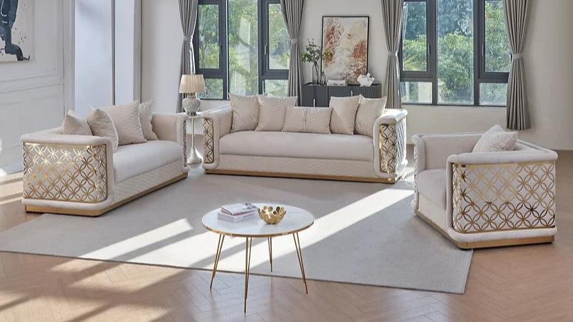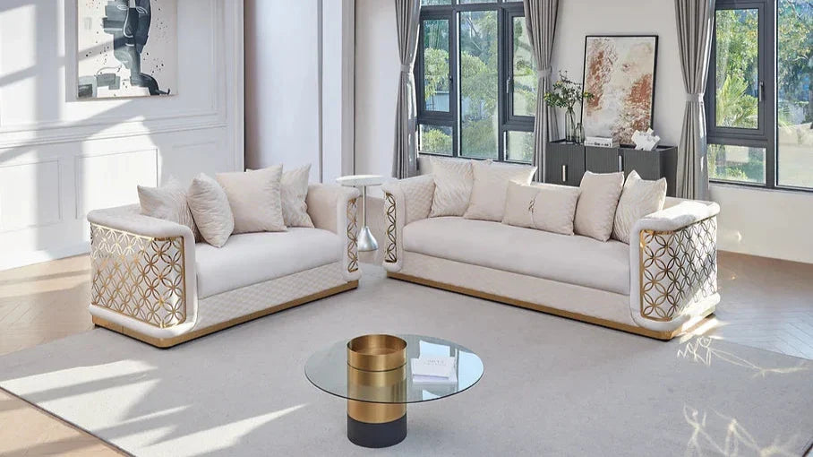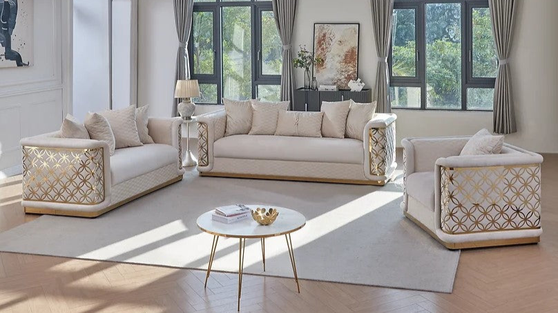 Découvrez Riya Living, le complément idéal à votre décoration intérieure. Confectionné en velours luxueux et orné d'élégants galons et motifs dorés sur les côtés, cet ensemble est également accompagné de coussins décoratifs pour une touche d'élégance supplémentaire. Sublimez votre espace de vie avec Riya Living.