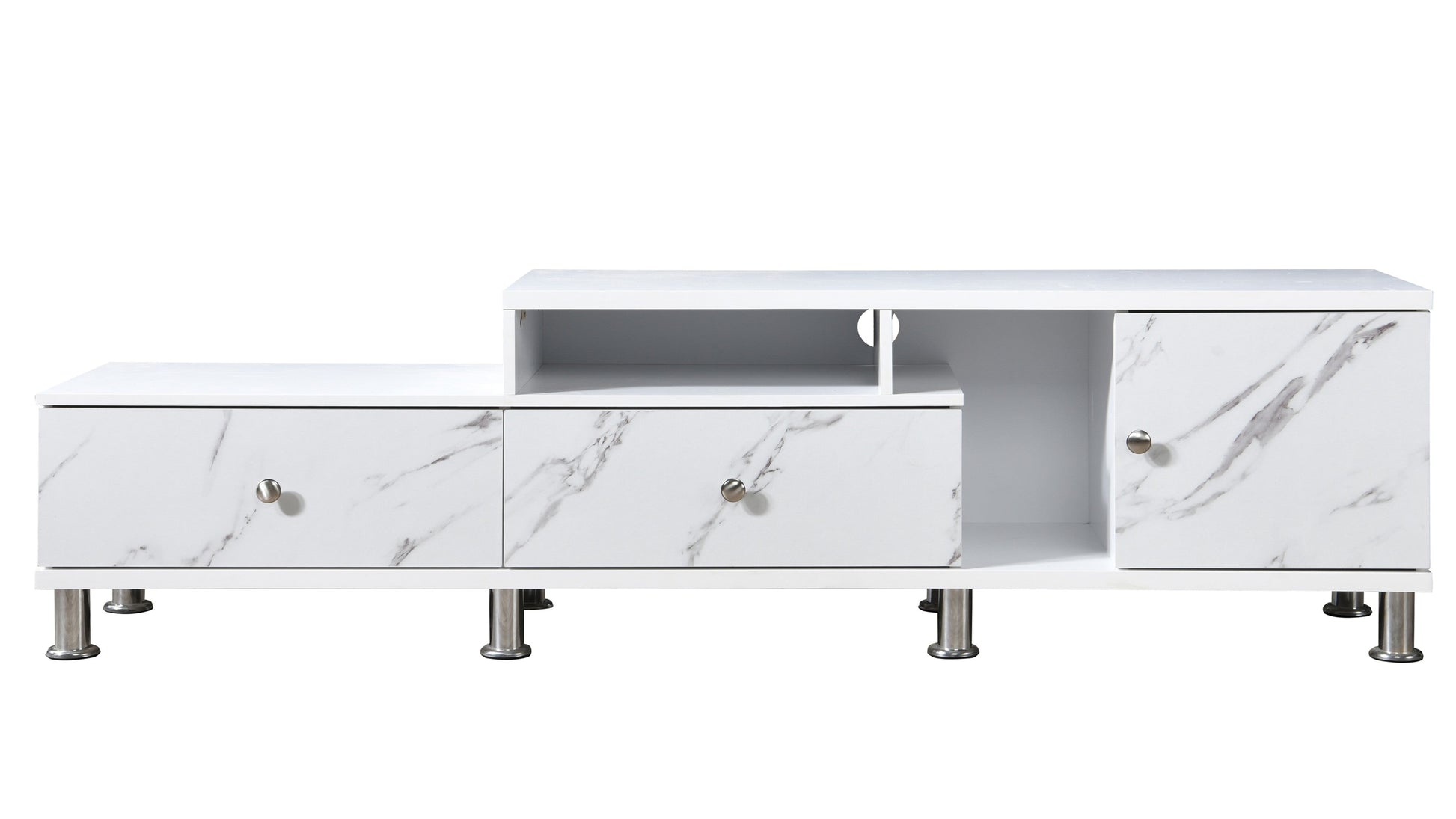 Sublimez votre salon avec le meuble TV Tessa, élégant et moderne. Avec son design en marbre blanc et ses pieds en métal robustes, ce meuble apporte une touche de sophistication et de durabilité à n'importe quel espace. Sublimez votre expérience télévisuelle avec cet accessoire élégant.
