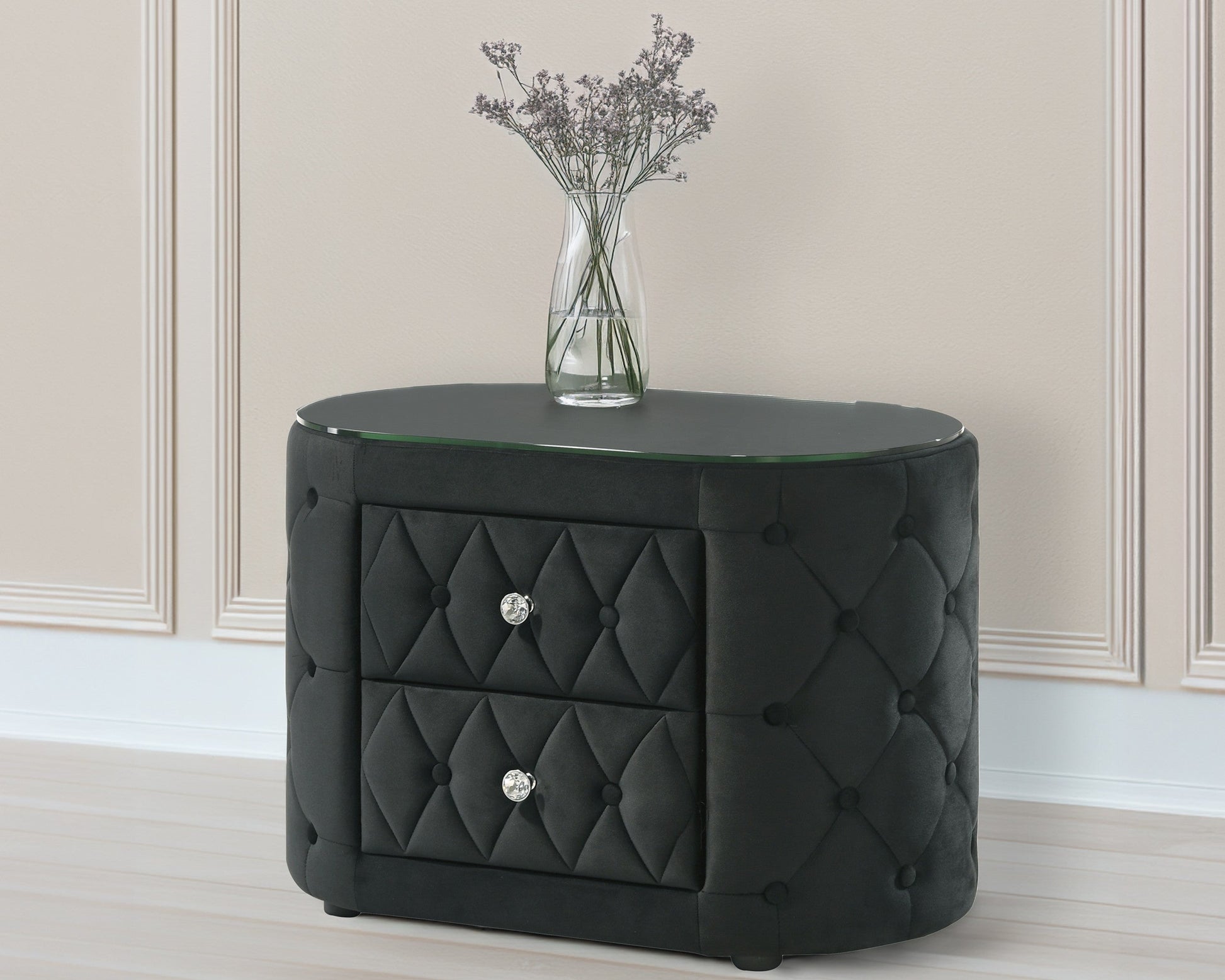 Cette table de chevet Voltare est dotée d'un verre trempé de 8 mm et d'un design ovale, alliant à la perfection modernité et tradition. Sa construction robuste et son étagère spacieuse offrent un espace de rangement fonctionnel pour vos essentiels de chevet, ce qui en fait un ajout élégant et pratique à votre chambre.