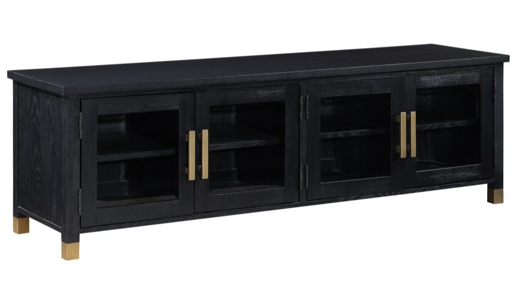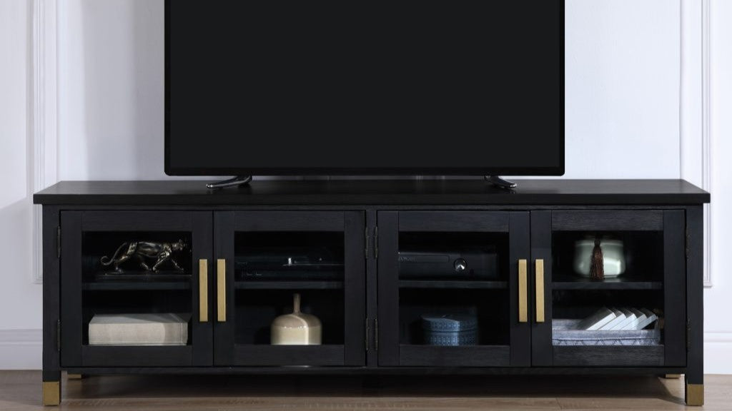 Sublimez votre espace de vie avec le meuble TV Yves. Fabriqué en bois d'acacia et placage de frêne de première qualité, ce meuble allie durabilité et élégance. Sa finition ébène teintée à la main, son effet vieilli et ses ferrures en laiton brossé lui confèrent une touche de modernité. Offrant une expérience TV optimale et des rangements polyvalents, il est le complément idéal de votre intérieur.